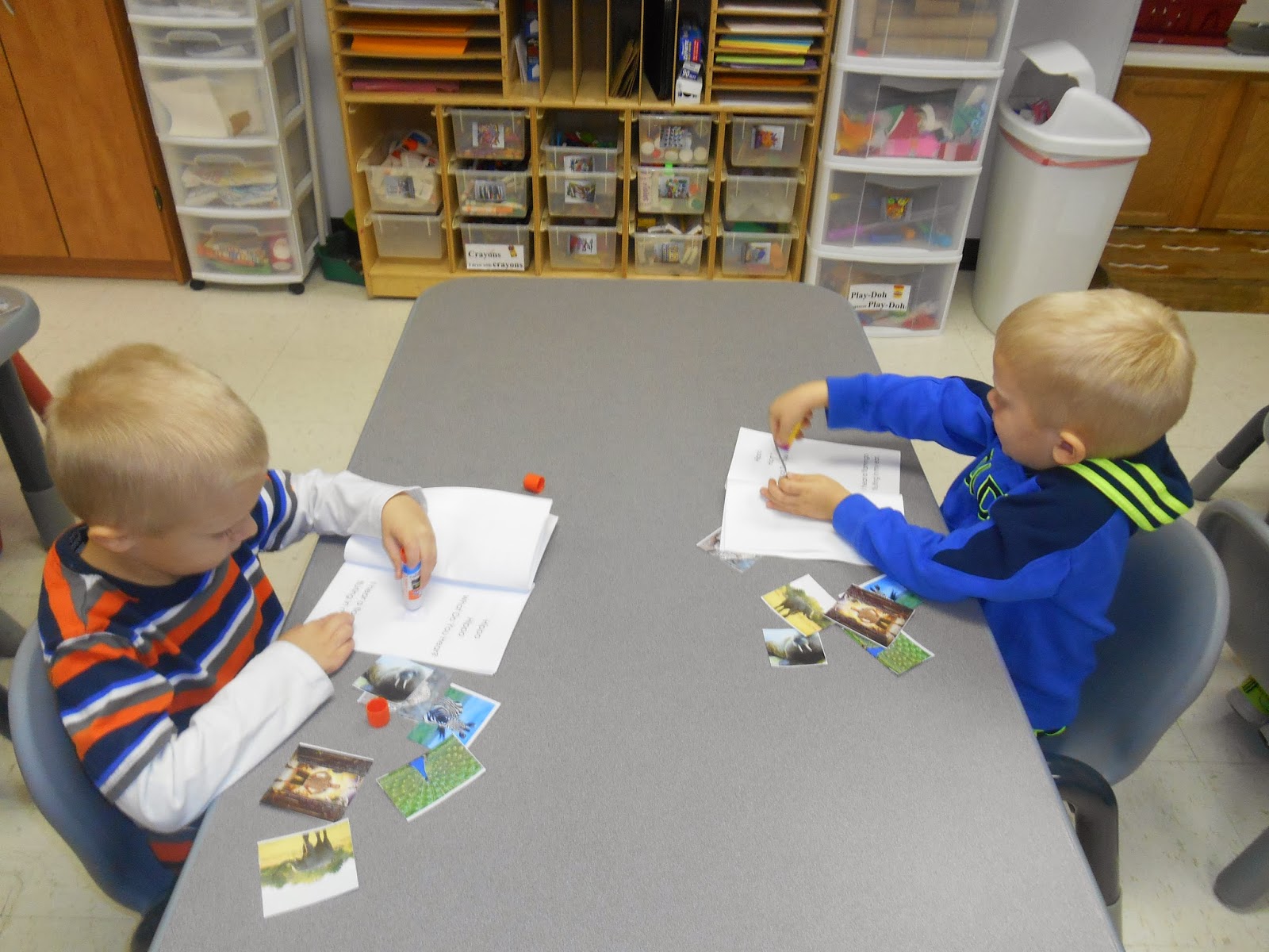 Today we read the book What Do Polar Animals Eat? We had one large group today; we made our own book! We listened to Polar Bear, Polar Bear, What Do You Hear? on the computer while we made our own book to take home! The kids did an excellent job listening to the story and what picture to glue on! I heard some children rereading their book after it was complete! Fabulous! Our Star of the Week shared his board too! See you all tomorrow! Ms. Ashley